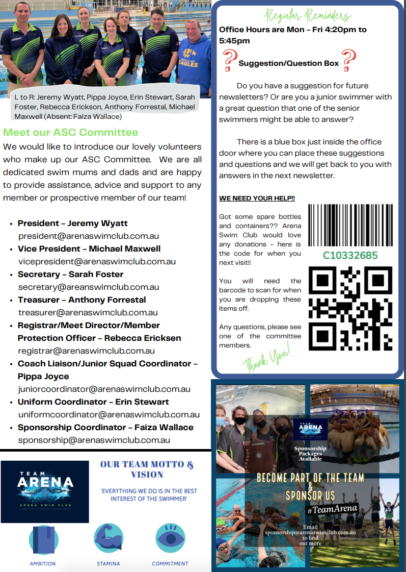 Sponsor Arena Swim Club Today